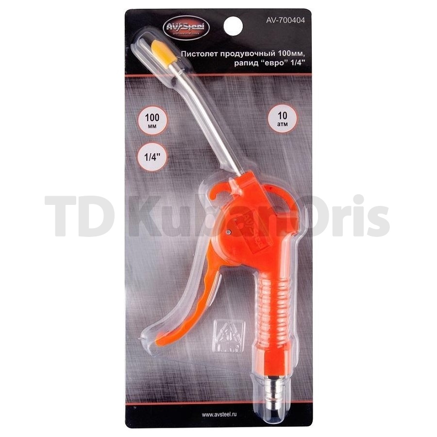 Продувочный пистолет AV Steel 100мм AV-700404 предназначен для очищения поверхностей от загрязнений. Подойдет для работы в труднодоступных местах.