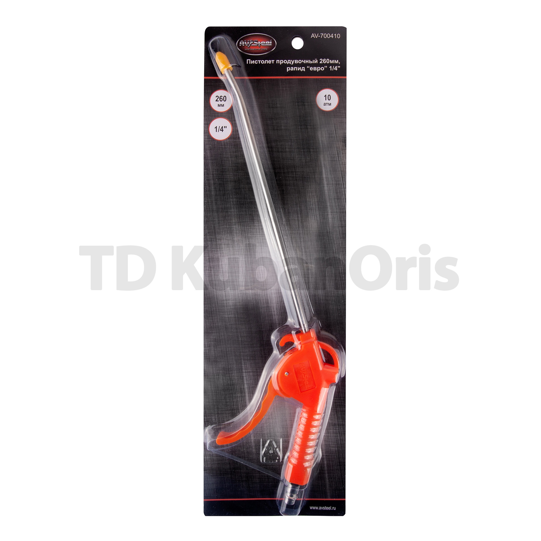 Продувочный пистолет AV Steel 260мм AV-700410 предназначен для очищения поверхностей от загрязнений и продувки отверстий.