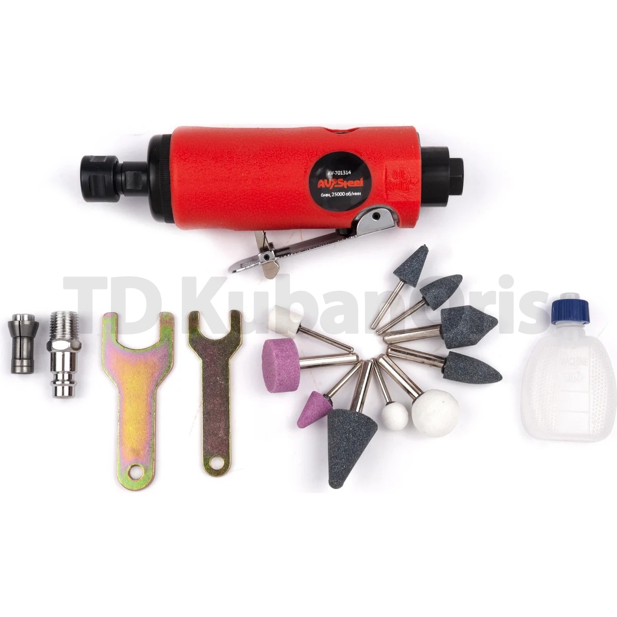 Пневмобормашина AV Steel с набором насадок AV-701814 может использоваться для шлифовки, зачистки, фрезерования и гравирования. Оснащена цанговым патроном на 6 мм, в комплектации имеется цанговый патрон на 4 мм. Поставляется в удобном пластиковом кейсе для переноски и хранения.