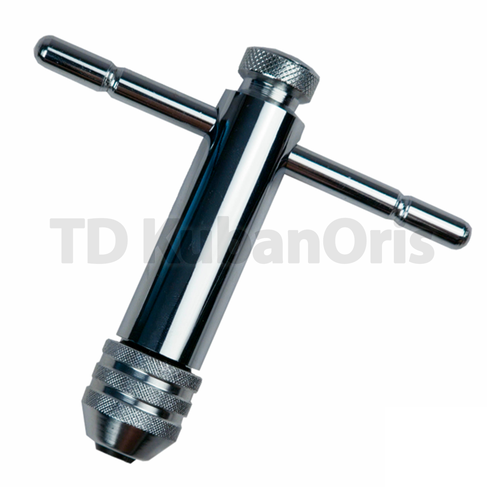 Метчикодержатель состоит из трех основных частей: корпуса, цанги и трещотки. Корпус Т-образный изготовлен из инструментальной стали марки 45 и имеет эргономичную ручку с рифлёным покрытием. Инструмент имеет хромированное покрытие, что защищает от коррозии. Цанга служит для зажима метчика и имеет регулируемый диаметр от М5 до М12. Трещотка имеет реверс, что ускоряет и облегчает работу, имеет 36 зубцов и два режима работы: правый и левый.